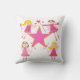 Fada Cor-de-rosa Princesas travesseiros com uma estrela grande rosa e quatro princesas fadas vestidas de rosa com varas mágicas sobre fundo branco.