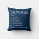 Adorável travesseiro decorativo decorativo só para o seu marido amoroso com um design de tipografia branca e a sua cor de fundo e a cor do lado de trás do travesseiro! Para alterar a cor do plano de fundo, use o botão personalizar. O texto também pode ser adicionado ao lado frontal ou traseiro. O travesseiro diz: Marido, substantivo 1. amante 2. amigo 3. fornecedor 4. protetor 5. tudo