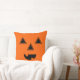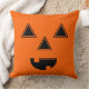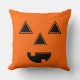 Este travesseiro decorativo festivo de Halloween aparece num impressão preto e laranja na face da abóbora. Personalize este travesseiro ou comprar como está.