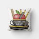 Apple do professor em um Teacup de Blackboard numa almofada. Dê uma Apple para Professora em um Blackboard Teacup da velha escola, com "Lápis" de Obrigado, Etiqueta de Chá, Régua e Lápis Amarelos. A parte de trás tem design de maçã repetida. Escolha apenas o presente perfeito para os professores em uma grande variedade de itens divertidos. Por Anni Arts.
