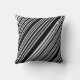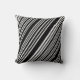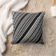 Esta almofada de lançamento é mostrada em uma estampa de listras pretas e brancas.