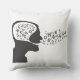 Um travesseiro redondo com um retrato artístico preto-e-branco em negrito com um detalhe de assinatura. Perfeito por adicionar um toque moderno e personalizado à decoração doméstica.