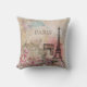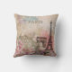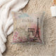 Design de Vintage parisiense apresentando Paris, Torre Eiffel, Arc De Triomphe e flores em um fundo efêmero cor-de-rosa doce e azul-d'água. Personalize e substitua o texto "PARIS" pela sua citação favorita. Melhore o seu espaço com este belo travesseiro vintage. Ajustados chique parisiense decor da casa vitoriana.