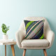 Travesseiro decorativo de linhas muito ricas e coloridas.