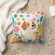 Uma almofada com um cachorrinho fofo sorrindo para você.