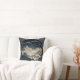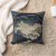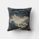 Um elegante travesseiro decorativo quadrado mostrando uma paisagem chinesa tridimensional em tons de cinza.
