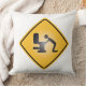 Travesseiro decorativo com um sinal de aviso amarelo do tráfego com um ícone que vomiting sobre um toalete que mostra uma manutenção.