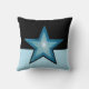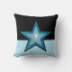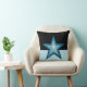 Design moderno com uma estrela azul e branca "brilhante" num fundo azul e preto claro. Travesseiro decorativo com um design personalizável para você personalizar com seu próprio texto, imagens e ideias. Esta é uma imagem de arte digital criada usando fotografias originais e técnicas digitais e impressa em tecido, ela não brilha ou contém faíscas reais.