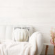 A imagem lindo da aguarela de uma abóbora branca macia com acentos cinzentos enche a parte dianteira deste travesseiro do acento do outono, e a parte traseira é coberta com um design de linho da estrutura estilizado em tan, em cinzento, e o marfim para coordenar com a imagem na parte dianteira. Este travesseiro do acento adicionará um toque sofisticado da cor neutra do outono a sua decoração home. Coordenadas com os outros artigos na coleção das folhas de outono da dança do estúdio Home gracioso.