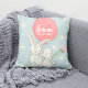Travesseiro com dois coelhos pequenos e um balão personalizado com o nome.