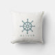 O travesseiro personalizado de uma criança com a roda de um navio. A decoração perfeita para criar uma atmosfera marinha em um berçário, quarto ou sala de jogos.