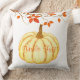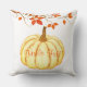 Este travesseiro decorativo é mostrado em folhas de outono e impressão de abóbora com cor branca de fundo. Personalize este travesseiro ou comprar como está.