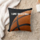 travesseiro decorativo de tema de basquete com texto "Eu amo basquete" que você pode personalizar e dois designs lado a lado com foto de tela de uma bola de basquete de verdade. Excelente presente para aquela cara que é duro a comprar, ou aquele fã de basquete que tem tudo.