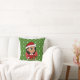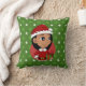 com uma ilustração de uma menina feliz sorridente com cabelo comprido e castanho, ela está vestindo fantasia vermelha e branca de Papai Noel e segurando um presente; feriados de Natal com um fundo verde sem soldadura com estrelas