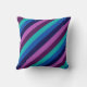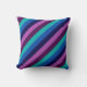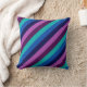 Um travesseiro decorativo de 16" x 16" com um padrão colorido design de faixas diagonais em legal azul-oceano, azul-marinho, roxo de ameixa e lavanda.