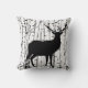 Se você ama árvores de pássaros, veados, natureza e vida selvagem você vai adorar este bonito travesseiro em preto e branco com uma densa floresta de pássaros brancos, um cervo na frente, e um pombo atrás!