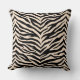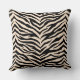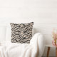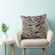 Este travesseiro decorativo é mostrado em um design de impressão de zebra animal exótico em cores de preto e um bege claro.