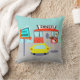 Sirva algo especial com este Travesseiro decorativo de Diner de 1950. O design de desenho de desenho mostra um prédio de tijolos vermelhos com janelas azuis, portas duplas de cinza, e uma placa branca que diz, "Jantar" preso no telhado. No estacionamento, um segundo sinal está num poste. A placa tem um fundo turquesa e uma seta vermelha piscando apontando o caminho para "Don's Diner". A placa fez o seu trabalho porque há um carro amarelo brilhante com barbatanas estacionadas ao lado. Mesmo que não possamos vê-los, os passageiros do carro devem estar batendo seus lábios. Uma linda e jovem carhop está patinando seu caminho para o carro. O cabelo morena dela está num rabo-de-cavalo. Ela está vestindo um uniforme curto, rosa, com um molde preto e um avental branco. Equilibrado por um lado, o carro é um tabuleiro preto carregando segurando um hambúrguer gigante e uma garrafa de refrigerante refrescante e antiquada. O fundo do restaurante é cheio de nuvens azuis claras e as silhuetas de árvores de cedro. O lado oposto do travesseiro apresenta um padrão de tijolos vermelho e divertido.