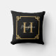 Um moderno travesseiro decorativo clássico de monograma preto e dourado. Personalize com seu nome e inicial. Faz um encantador suplemento à sua decoração. Projetado para você pelo Blackberry Boulevard.