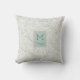Travesseiro decorativo elegante vintage com um padrão perfeito de ramificações salgadas em uma bela cor verde-claro e um monograma personalizado em uma fonte sans serif com um galho embaixo. Verifique em nossa loja mais opções de travesseiro decorativo.