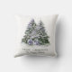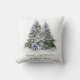 Esta elegante almofada de Natal apresenta lindas árvores de Natal roxas e verdes, pintadas com ornamentos de vidro e cercadas por presentes envoltos. O ornamento também inclui a mensagem MERRY CHRISTMAS em uma fonte elegante. Personalize a almofada adicionando seu nome de família e o ano.