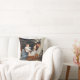 Elegante travesseiro decorativo de Natal com feriados felizes escritos à mão e fotos personalizáveis. Um presente de excelente ou memória familiar. Clique no botão editar para personalizá-lo com sua própria imagem e detalhes. Exemplo de imagem: Freepik.com