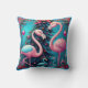 Travesseiro decorativo de Natal Flamingo com uma família de Flamingos pronta para o feriado. Cores vibrantes de pinças e chaleiras. Aproveite este travesseiro de Natal / Férias a toda a temporada!
