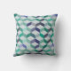Travesseiro geométrico verde e azul. Feito nos EUA com algodão ou poliéster de alta qualidade. Travesseiros decorativos decorativos com padrão geométrico em cores contemporâneas. Disponível em tamanhos quadrados de 16 ou 20 polegadas e retangulares de 13" por 21". Inserir incluído. (Disponível também como um pátio ou travesseiro de jardim, basta selecionar o exterior na guia Tecido e escolher o tamanho necessário).