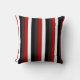STRIPES VERMELHAS, BRANCAS e NEGRAS, Travesseiro decorativo- Um travesseiro riscado nítido, em cores vermelho, branco, preto e cinza. O lado frontal do travesseiro são as tiras grossas coloridas. O lado traseiro do travesseiro é preto sólido.