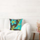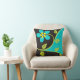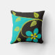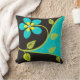 Turquesa em negrito decoração personalizada de flores estilizada American Mojo travesseiro. Um impressionante design de sotaque, com uma flor azul-turquesa ousada, com folhas verdes sobre fundo preto e turquesa, com cor damasco. Clique em Personalizar e escolha entre mais de 200 cores para mudar de cor (turquesa).
