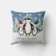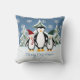 Decore sua casa com um travesseiro decorativo festivo. Este travesseiro decorativo bonito e festivo tem um fundo nevado e uma família bonito do pinguim que leia: Feliz Natal