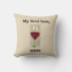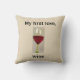Atrativo, bege, poliéster, 16' x 16', travesseiro decorativo com vinho tinto em uma imagem de vidro e texto engraçado. Os travesseiros decorativos estão disponíveis em outros estilos, cores, e tamanhos.