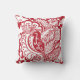 Travesseiro decorativo com design de pássaros, folhas, flores e borboletas de jardim vermelho e branco. Este desenho foi inspirado pela bela arte do corte de papel chinês.