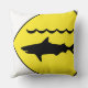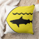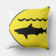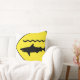Travesseiro decorativo com um sinal de tráfego amarelo com "um ícone do tubarão de advertência".