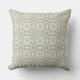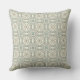 Este travesseiro decorativo caracteriza um teste padrão azul e marrom do círculo em um fundo de creme.