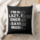 Este na moda e travesseiro decorativo humorístico é a adição perfeita ao seu espaço de vida. Apresentando a frase espirituosa "Eu não sou preguiçoso, estou no modo de economia de energia", ela adiciona um toque de humor à sua decoração doméstica. Feito com materiais de alta qualidade, este travesseiro é confortável e durável, fazer-o como um presente ideal para amigos, familiares ou até mesmo para você. Perfeito por dias preguiçosos no sofá ou como peça decorativa em qualquer quarto.