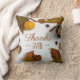 Linda imagem das folhas do outono, sidra quente com laranja e canela e borrifadas de Star Anise. "Obrigados" é escrito em caracteres elegantes e castanhos escuros e "Doando" escrito embaixo em uma fonte fina e compatível. Belo travesseiro a acrescentar à decoração de casa de Ação de Graças.
