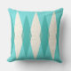 Este travesseiro decorativo exterior moderno de Argyle do meio século caracteriza um fundo vibrante, de turquesa e um teste padrão da modificação, cobertura translúcida maior, diamantes de creme com o ouro colorido, salpicos dos diamantes da cerceta do vintage da era espacial. Este argyle inspirado, deconstructed minimalista é uma reminiscência simplista do maior do que a era atômica da vida que dominou a paisagem de decoração dos anos 50 e dos anos 60. Este design kitschy é reminiscente de tudo sinais da pista de bowling do Palm Springs retro' às bandejas que da televisão você se usou na casa da sua avó.