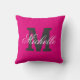 Travesseiro decorativo feito sob encomenda do monograma do fundo da cor. Coxim monogrammed personalizado para o sofá, o sofá ou a cama no quarto. Nome de Personalizable e letra inicial. Na cor cor-de-rosa ou feita sob encomenda de néon à moda do fundo. Design de texto elegante da tipografia do roteiro. Decoração elegante da casa do vintage. Decorações na moda e acessórios.