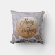 Travesseiro decorativo Feliz Natal com padrão iridescente de efeito de cetim em tons de bronze.