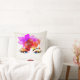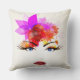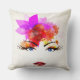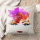 Travesseiro decorativo com uma ilustração brilhante e brilhante do rosto de menina floral em um fundo transparente (branco usado em amostra) ou cor de fundo personalizada.