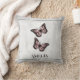 Adicione um toque elegante à sua vida ou aos seus quartos com um Travesseiro decorativo Personalizado Floral de Borboleta Rosa. O design de travesseiro apresenta um par de borboletas vibrantes que repousam sobre uma videira floral branca contra um fundo de nuvens de cinza clara. Itens de presentes adicionais disponíveis com este design também.