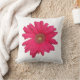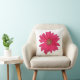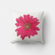 Adicione um pop de cor a este Travesseiro decorativo divertido. Uma margarida rosa brilhante de gerbera em um travesseiro branco brilhante é o sotaque perfeito para sua sala de estar.