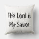 Travesseiro decorativo com Jesus e as palavras "O Senhor é o Meu Salvador" escritas atrás do travesseiro