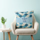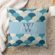 Pastel azul escamas travesseiro decorativo com monograma personalizado em caracteres elegantes para uma decoração costeira perfeita
