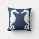 Ame todas as coisas náuticas? Então este travesseiro decorativo náutico dos cavalos de mar é para você. Este travesseiro da vida marinha caracteriza o fundo azul escuro com cavalos marinhos brancos. Aperfeiçoe para toda a sala em sua casa, escritório ou casa de praia. Igualmente faz um presente maravilhoso do housewarming! Escolha do poliéster ou do algodão da categoria A de 100%. Escolha o tamanho 16" x16" ou 20" x20".