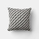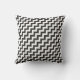 Um Travesseiro decorativo na moda ou uma almofada de dispersão, com um padrão ziguezague de trilhos diagonais preto e branco, frontais e traseiros.