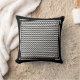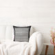 Um Travesseiro decorativo na moda ou uma almofada de dispersão, com um padrão Chevron de ziguezags pretos e brancos em tendência, frente e verso.