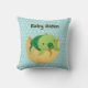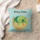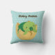 Um travesseiro decorativo com uma tartaruga bebê fofa que acabou de sair do ovo. Ela tem uma chupeta verde na boca. Fundo com bolinhas. Personalize com o nome da criança. Ótimo como peça decorativa para o quarto do bebê, especialmente para menino.