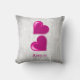 Adicione um toque de cor à sua vida ou aos seus quartos com um Travesseiro decorativo personalizado magenta Hearts. O design de travesseiro apresenta um par de corações, uma vinha branca e macia contra um fundo de cinzas leves movendo-se com uma área para personalizar com o seu nome. Itens de presentes adicionais disponíveis com este design, bem como uma variedade de cores.